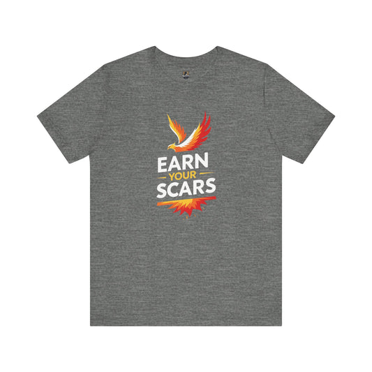 Empowering Graphic Tee: Earn Your Scars, Unisex T-Shirt, Motivational Shirt, Gifts for Athletes, Fitness Apparel, Casual Wear, [...]