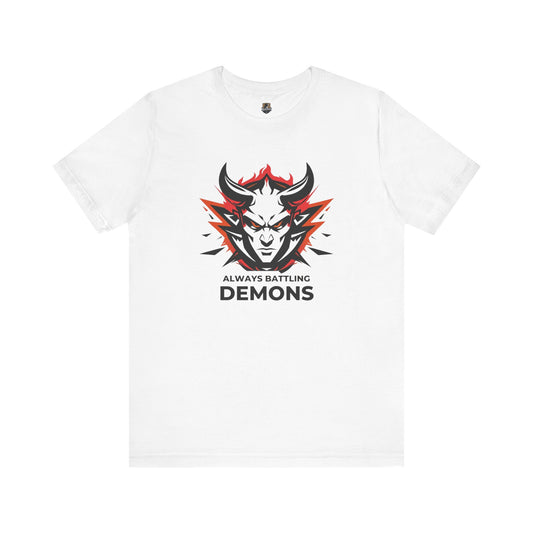 Always Battling Demons, Motivational Shirt, Graphic Tee, Casual Wear, Gift for Gamers, Battle-Inspired Fashion