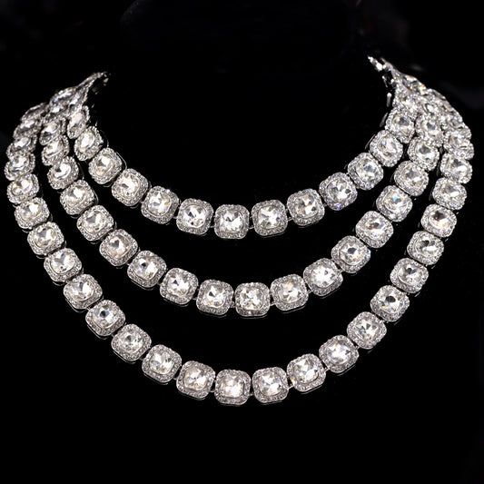 Women Bling Bling Pink Square Crystal Link Chain Necklace Hip Hop Gold Silver Color 13mm Luxury Cuban Choker Necklace Jewelry