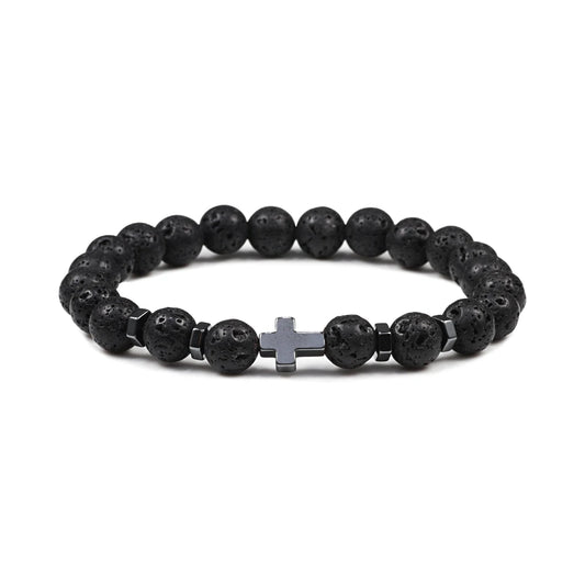 Prayer Men Women Bracelet Hematite Cross Rosary Natural Stone Beads Jesus Onyx Meditation Bracelets Bangles Jewelry Gift Pulsera