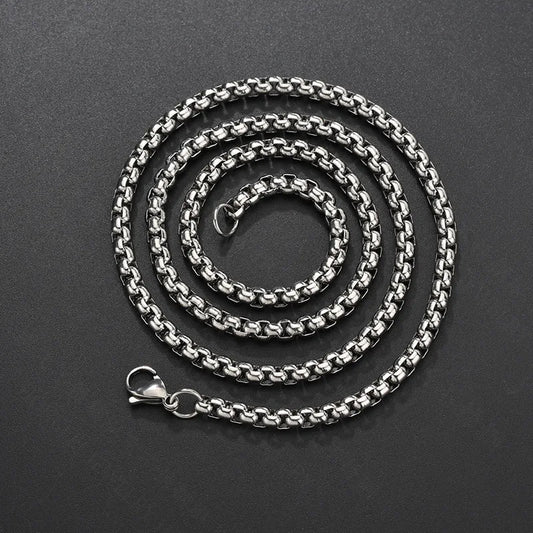 MKENDN Black Stainless Steel Chain Necklace Men Women Simple Round Box Chain Punk Hiphop Jewelry Choker Necklaces DIY Accessory