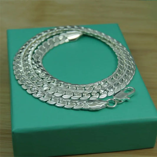 925 Sterling Silver Necklace 6MM Side Z-Shaped Necklace, Bracelet Men's And Women's Jewelry Gift 45-60CM