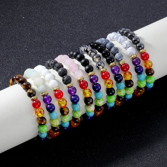 OAIITE Classic 7 Chakra Bead Bracelet Men Hematite Volcano Lava Pulse Therapy Balance Bracelet Yoga Meditation Jewelry Women