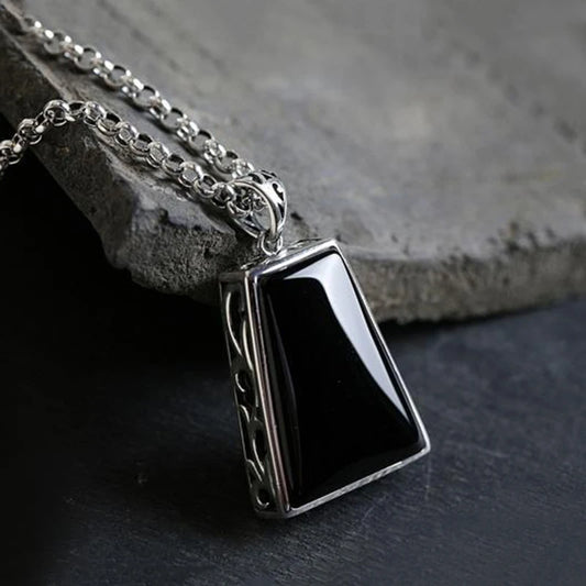 Original design geometric black agate pendant necklace retro domineering creative men and women charm brand silver jewelry