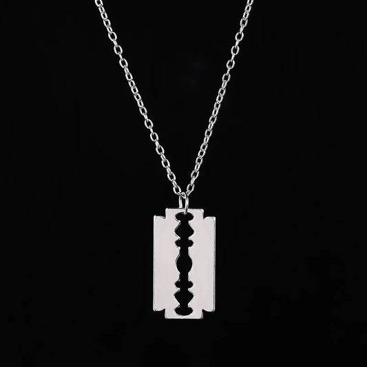 Kpop Safety Blade Razor Pendant Necklace for Men Long Chain Collar Hiphop Jewelry for Men Boys Geometric Dangling Party Gift