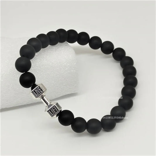 Lava Bracelet Black Volcanic Stone Black Matte Dumbbell Beads Bracelets Father's Day Gift for Women Men Fitness Barbell Jewelry