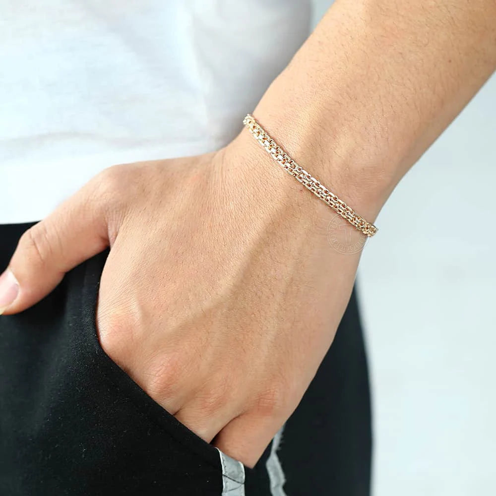 5mm Bracelet On Hand for Women & Men – 585 Rose Gold Bismark Link Chain