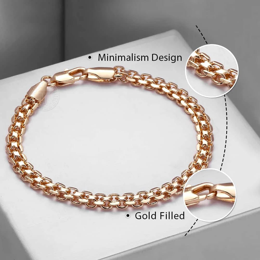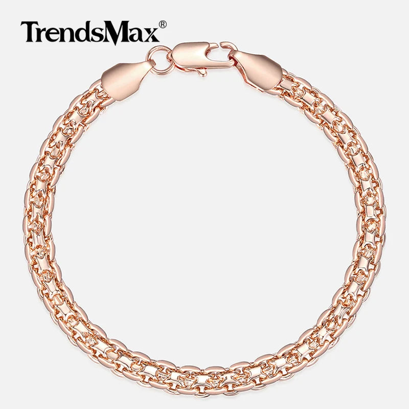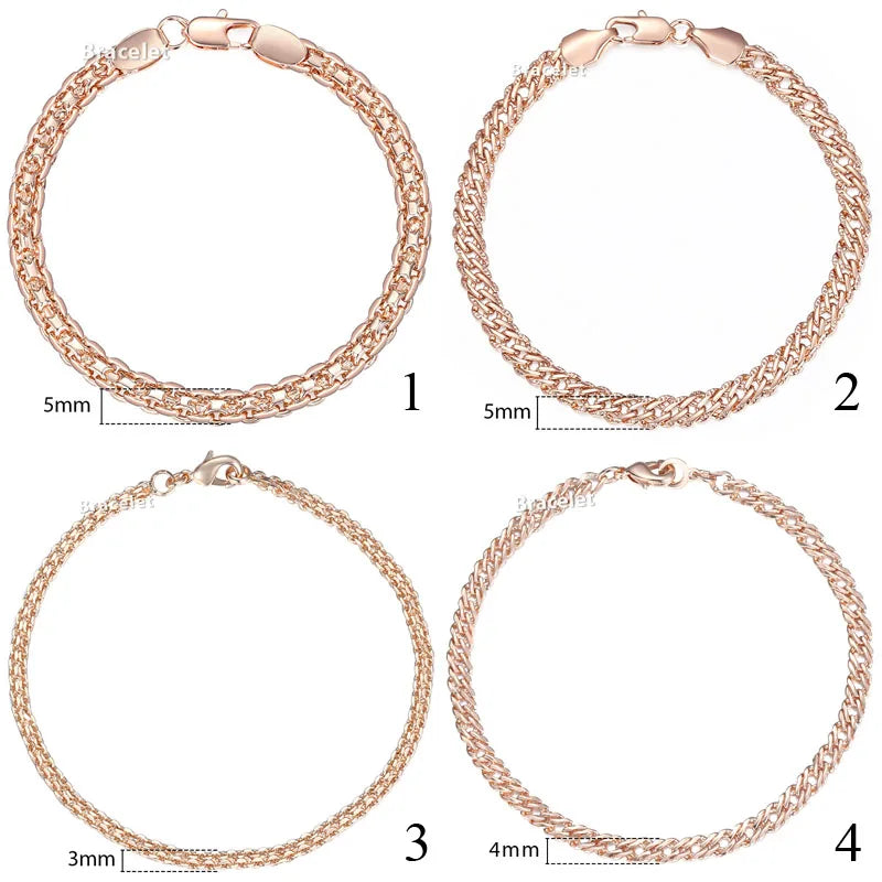 5mm Bracelet On Hand for Women Men 585 Rose Gold Color Bismark Link Chain Copper Bracelets Elegant Jewelry Gifts 20cm GB422