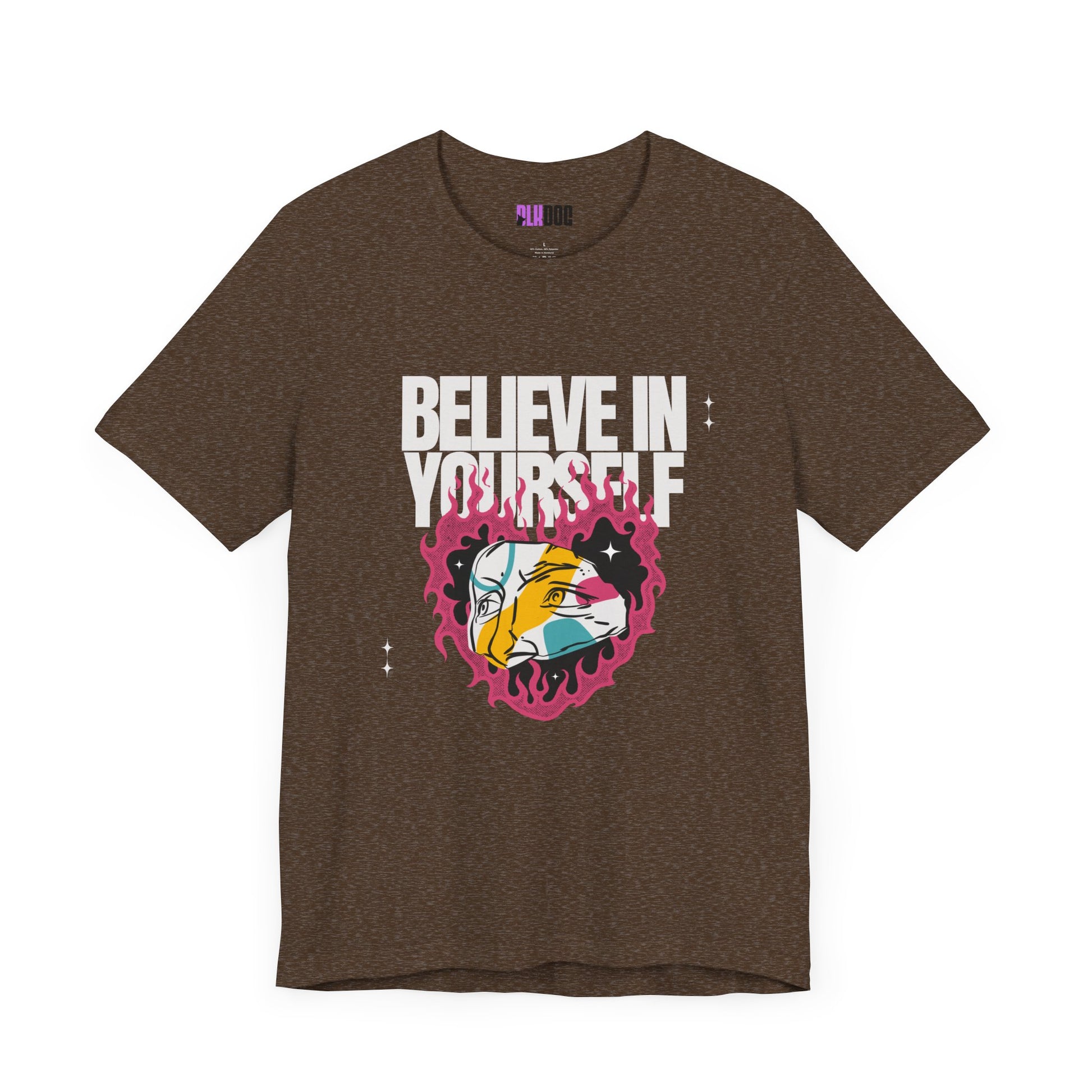 A motivational unisex jersey short sleeve tee with the inspiring message 'Believe in yourself'. This tee exudes positivity and self-confidence, making it perfect for anyone looking for a daily dose of encouragement. Ideal for those who appreciate uplifting messages and want to spread positivity. Perfect for casual wear, lounging, or as a thoughtful gift for birthdays, graduations, or any occasion. Product features - Made with 100% lightweight Airlume combed and ring-spun cotton for breathability and comfort - Retail fit with a crew neckline for a classic, versatile style - Manufactured by Bella+Canvas in a sustainable and ethical manner - Features tear-away label for minimized skin irritations - Variety of fabric blends available for different color options Care instructions - Machine wash: cold (max 30C or 90F) - Non-chlorine: bleach as needed - Tumble dry: low heat - Iron, steam or dry: medium heat - Do not dry-clean