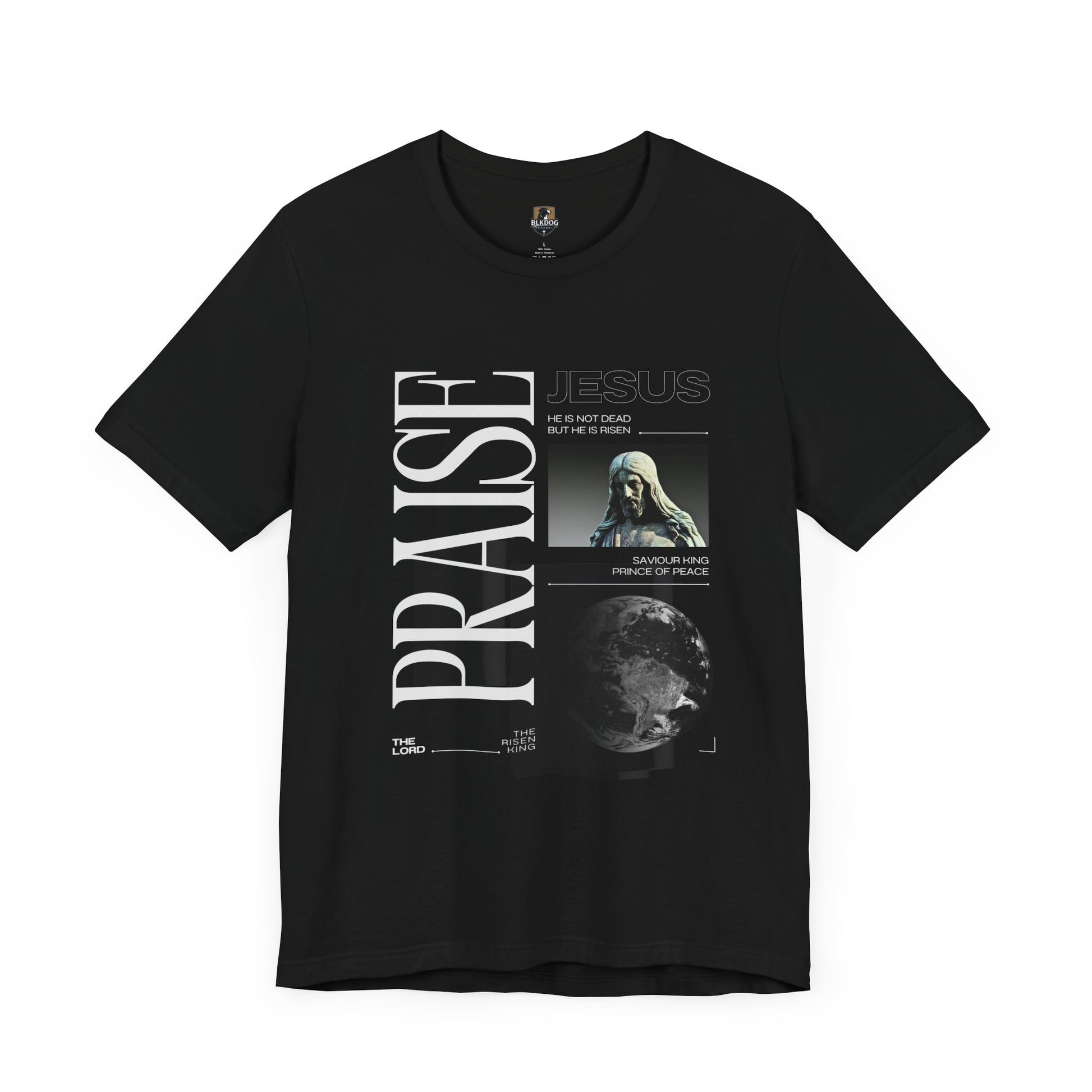 This T-Shirt with 'Praise Jesus' design exudes a positive and spiritual vibe. Perfect for those who want to express their faith and share positivity with others. Ideal for Christians, believers, and those who appreciate religious themes and messages. Relevant to holidays like Easter, Christmas, and everyday wear. Product features - Made with 100% Airlume combed and ring-spun cotton for lightweight and breathable comfort - Retail fit suitable for casual and semi-formal settings - Manufactured in a humane and sustainable way by Bella+Canvas - Features side seams and shoulder tape for added durability - Sleeve and neck label printing techniques ensure crisp and detailed designs Care instructions - Machine wash: cold (max 30C or 90F) - Non-chlorine: bleach as needed - Tumble dry: low heat - Iron, steam or dry: medium heat - Do not dry-clean